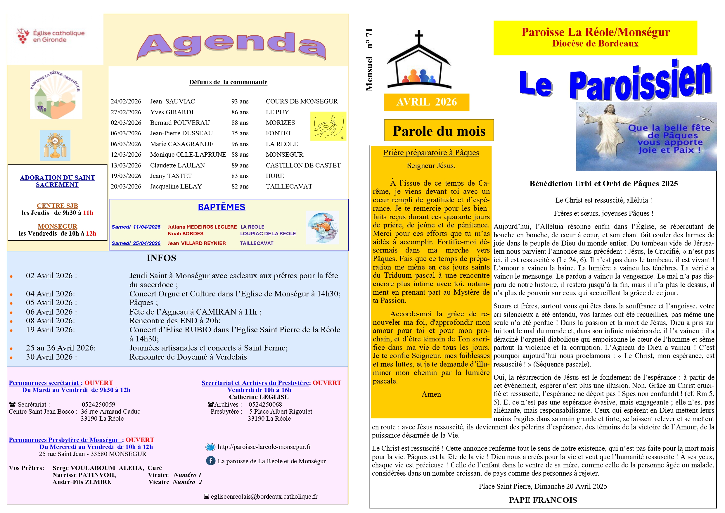 Le Paroissien mercredi 25 mars 2026 13:34:00 Le Paroissien n° 71 - avril 2026 Pour agrandir les images, faire "clic droit" "ouvrir l'image dans un nouvel onglet"